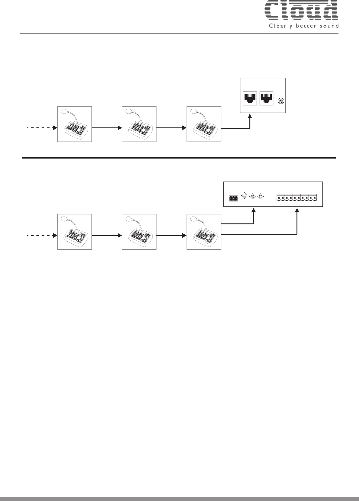 cable and RJ45 connectors. Microphones may be located anywhere in the system, provided that the total cable length does not exceed 1 km.
